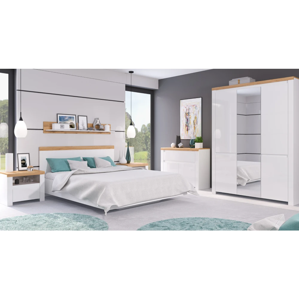 Jednolůžková postel v kombinaci bílé a dubu wotan je skvělou volbou pro ty, kteří hledají spojení elegance, přírodního vzhledu a kvalitního zpracování. Díky svému univerzálnímu stylu se snadno sladí s ostatním nábytkem a stane se harmonickým prvkem vašeho interiéru.