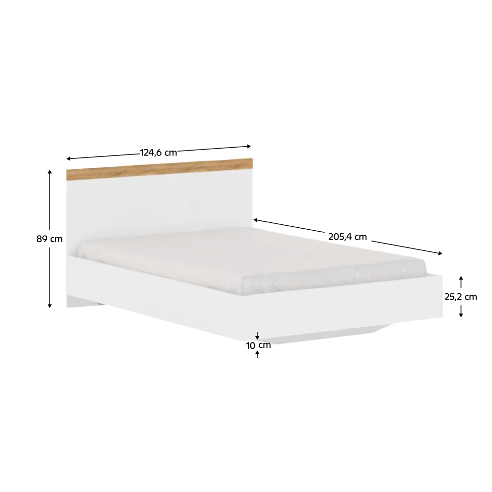 Jednolůžková postel 120×200 bílá / dub wotan – stylová kombinace elegance a přírodního designu