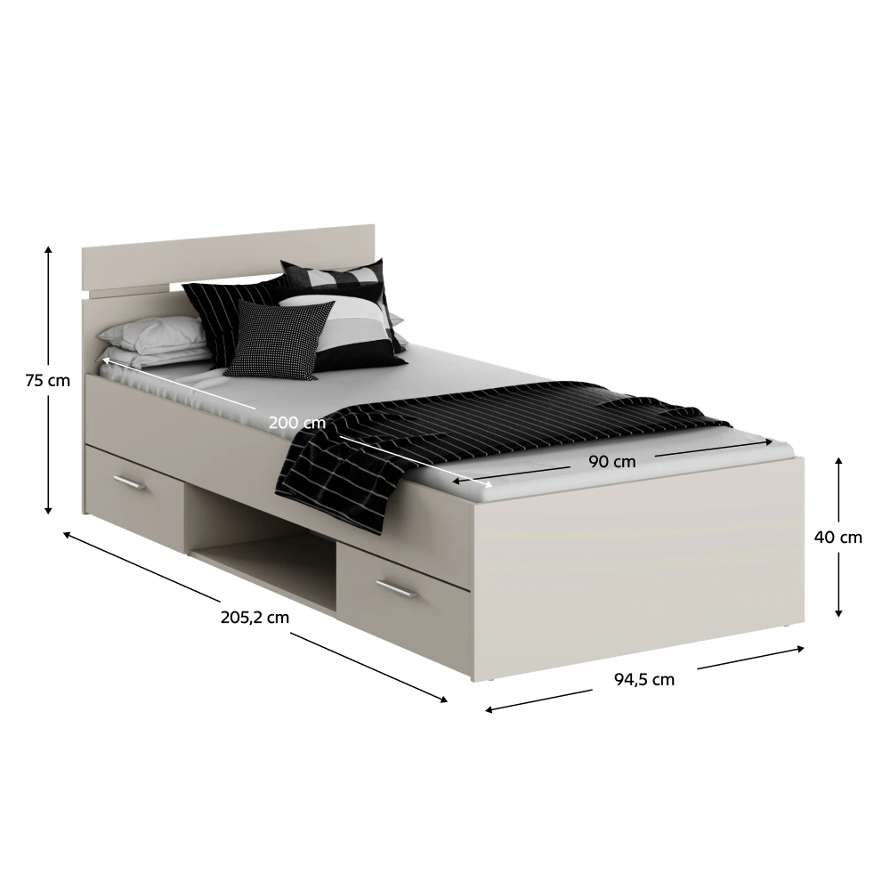 Postel MICHIGAN NEW v elegantním odstínu cashmere je ideálním řešením pro menší ložnice, dětské či studentské pokoje. Nabízí praktické úložné šuplíky a otevřený odkládací prostor, díky kterým budete mít vše potřebné po ruce a přitom zachováte v místnosti pořádek.