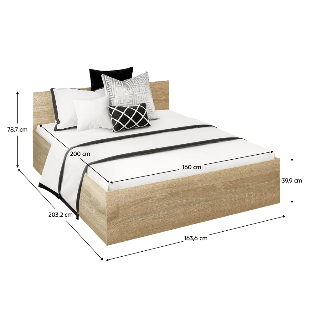 Postel je vyrobena z kvalitní laminované DTD o tloušťce 1,6 cm, která zajišťuje dlouhou životnost, pevnost a snadnou údržbu. Díky ploše na spaní 160×200 cm poskytuje dostatek prostoru pro pohodlný spánek dvou osob.