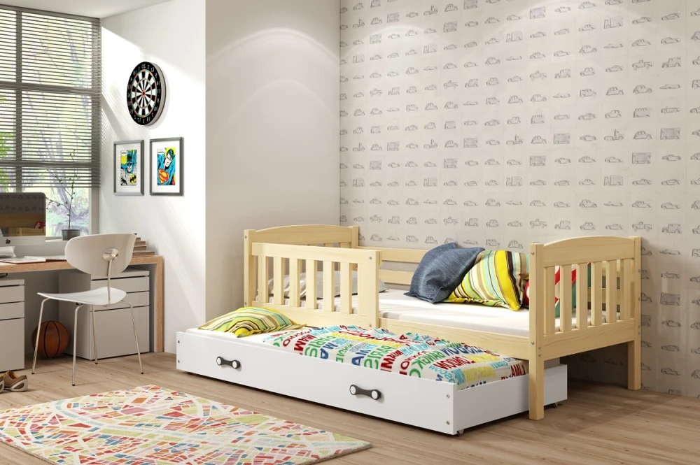 Dětská postel Kuba II je ideální volbou pro rodiče, kteří pro své dítě hledají funkčnost, pohodlí a kvalitní zpracování. Díky chytrému provedení s výsuvnou přistýlkou nabízí postel dostatek prostoru nejen pro jedno, ale i pro dvě děti, případně pro kamarády, kteří u vás přespávají.