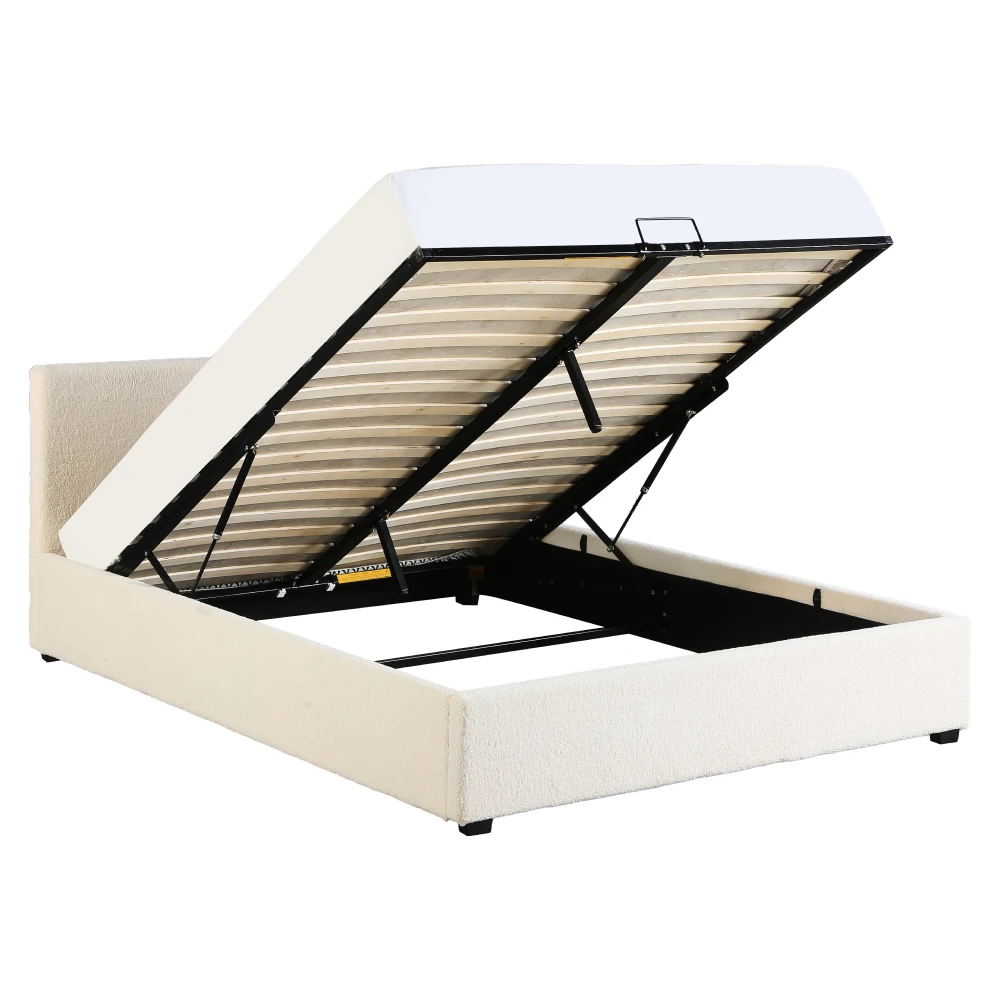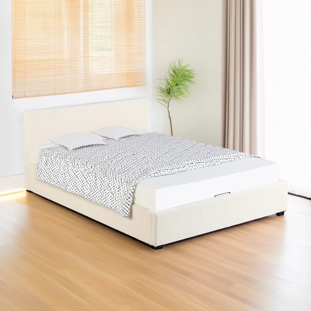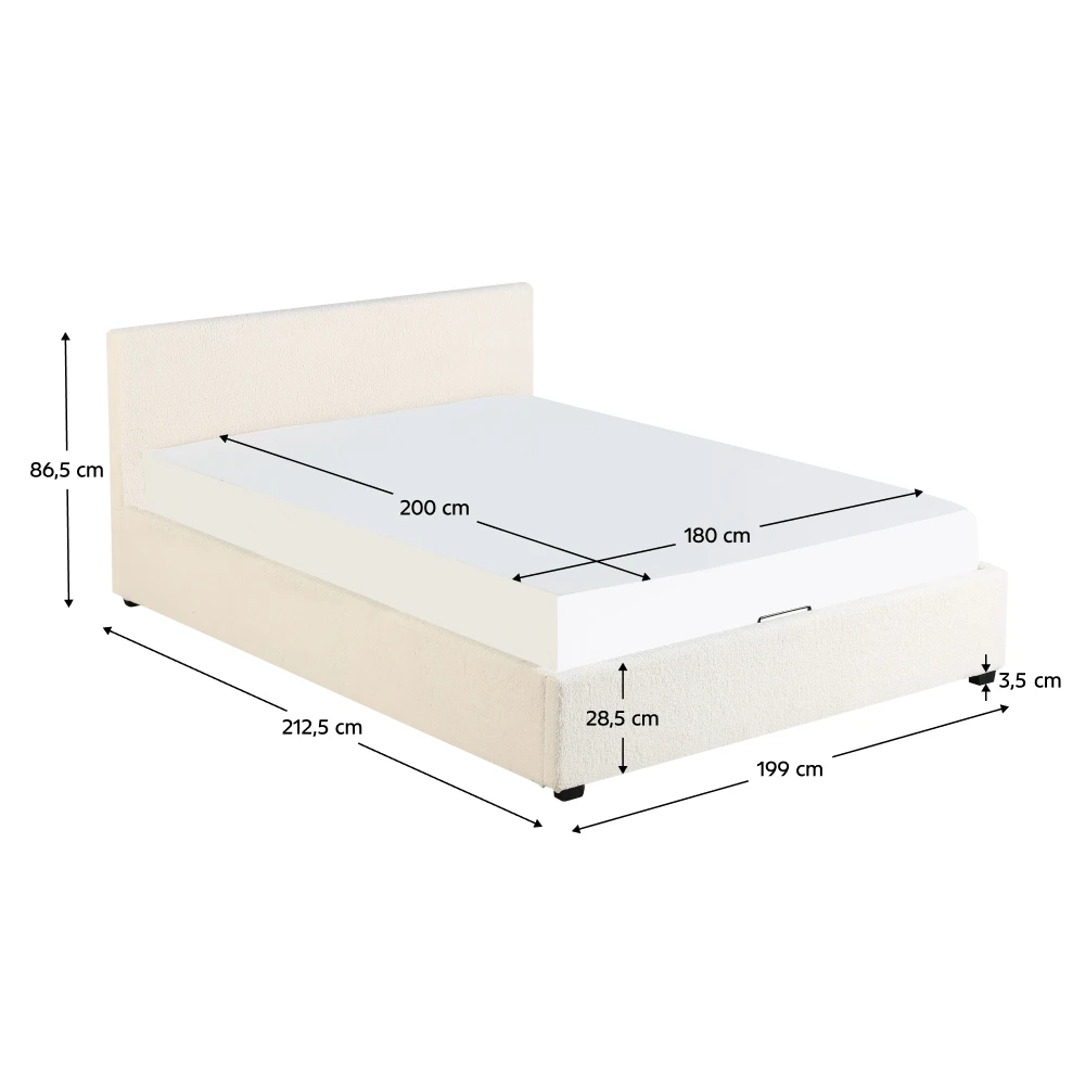 Manželská postel LUNELA je ideální volbou pro každého, kdo hledá dokonalé pohodlí spojené s elegantním a nadčasovým designem. Jemná Bouclé látka působí luxusně, je měkká na dotek a okamžitě dodá ložnici útulnou atmosféru. Nadčasová bílá barva prostor projasní a působí čisto a lehce.