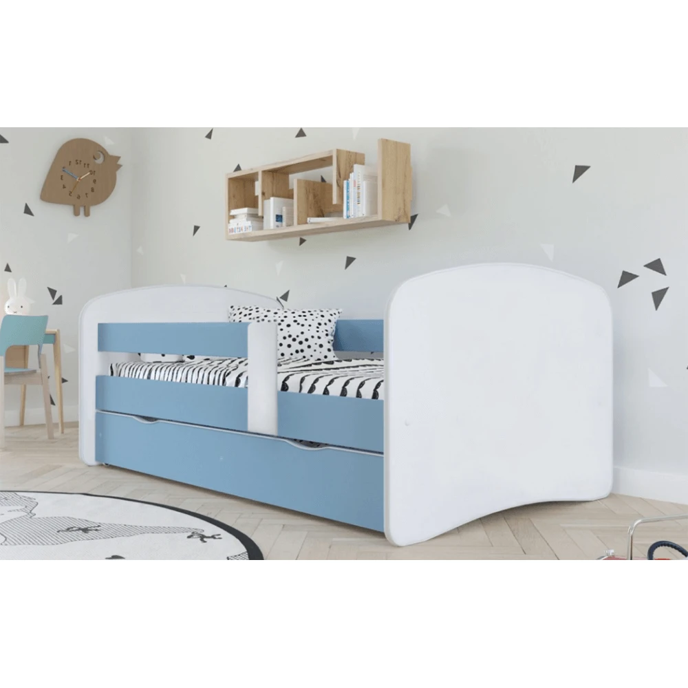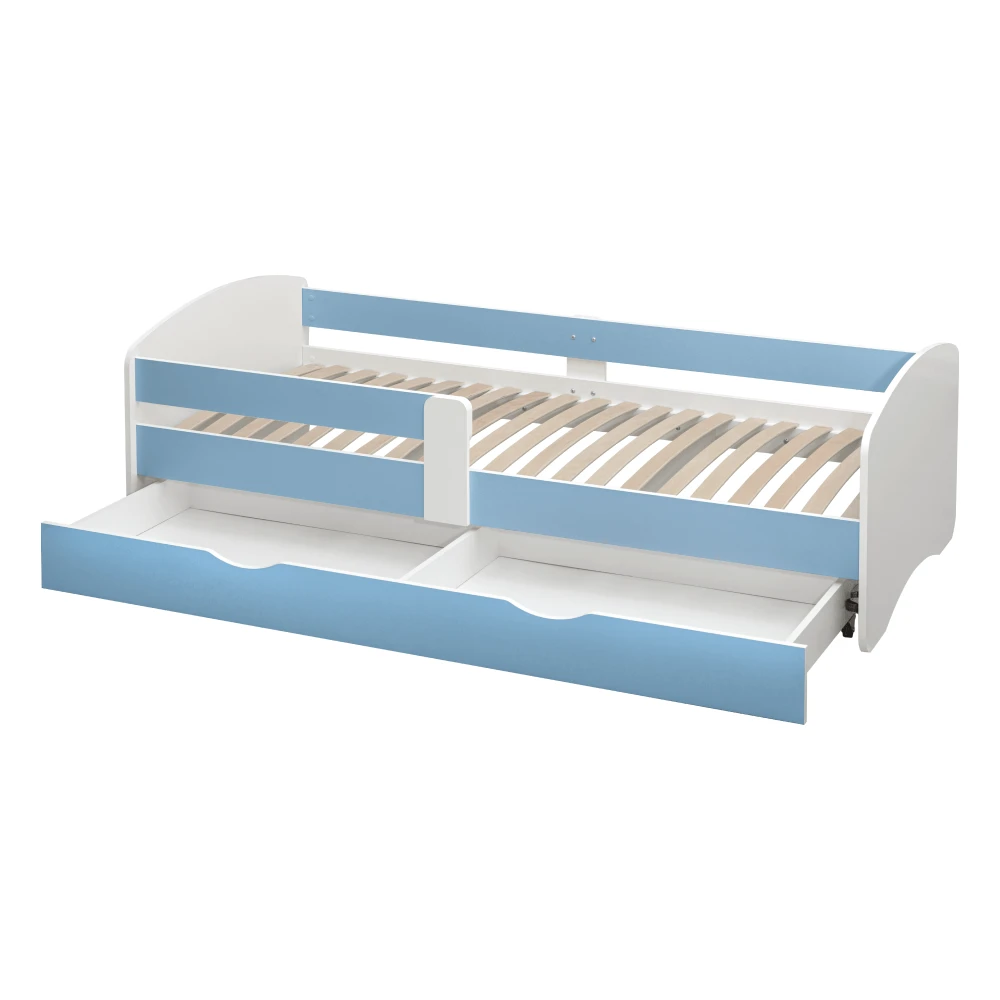 Stylová dětská postel v kombinaci bílé a modré barvy rozzáří každý pokoj svou svěžestí a veselým vzhledem. Svým designem skvěle zapadne do interiéru chlapeckého i dívčího pokoje a díky neutrálním barvám se snadno kombinuje s dalším nábytkem. Vyrobena je z kvalitní laminované DTD desky o tloušťce 1,8 cm, která zaručuje pevnost, stabilitu a dlouhou životnost i při každodenním používání.