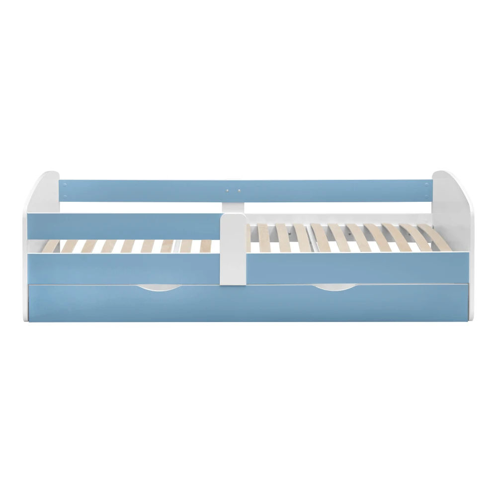 Postel zaujme také svým praktickým úložným prostorem tvořeným dvěma prostornými šuplíky na kolečkách, které se lehce vysouvají a poskytují ideální místo pro hračky, lůžkoviny nebo oblečení. Součástí je lamelový rošt, který zajistí dostatečné větrání matrace a pohodlnou oporu těla při spánku. Díky nosnosti 90 kg a hmotnosti 55 kg je konstrukce stabilní, pevná a bezpečná.