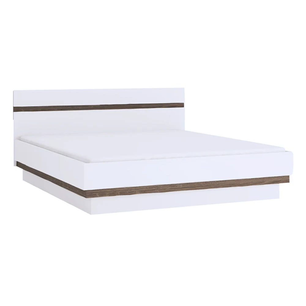 Stylová postel LYNATET 97 v moderní kombinaci dub sonoma truflový / bílá s extra vysokým leskem vnese do ložnice eleganci, svěžest a nadčasový vzhled. Její design zaujme čistými liniemi, kontrastními barvami a moderními zaoblenými hranami, které působí jemně a sofistikovaně. Postel je vyrobena z kvalitních materiálů – laminované DTD a MDF desky o tloušťce 16 mm, které zajišťují pevnost, stabilitu a dlouhou životnost.