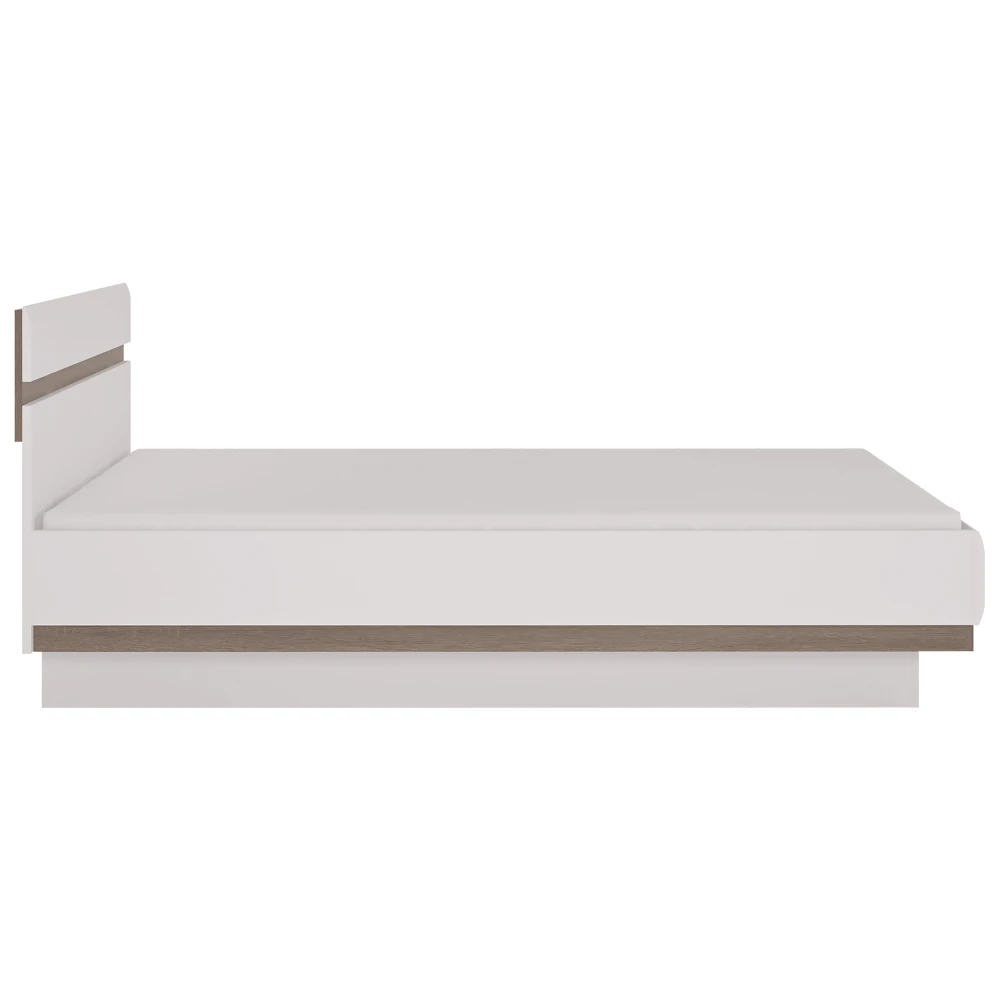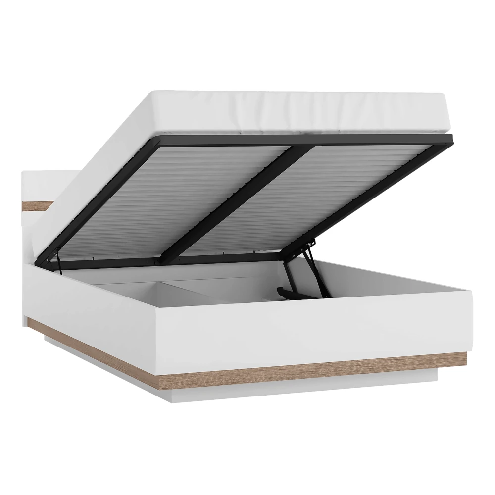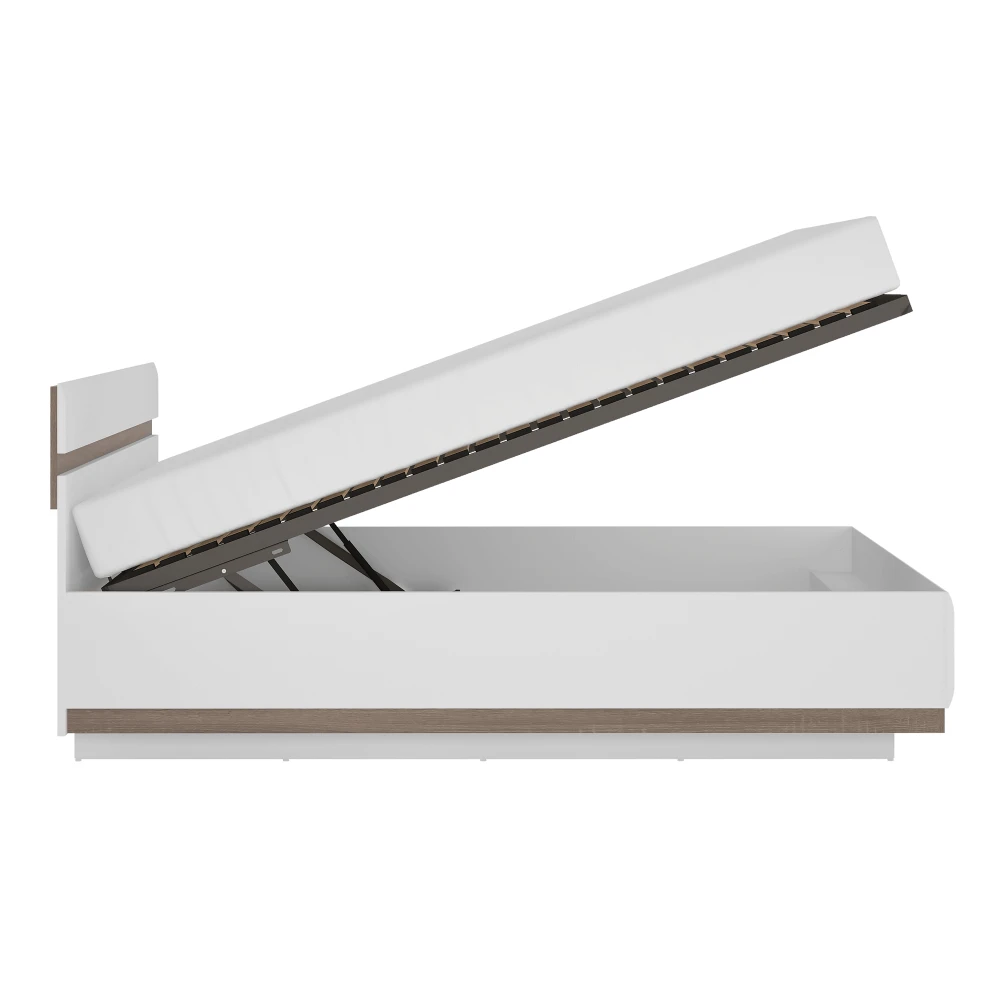 Postel LYNATET 97 140×200 dub sonoma truflový / bílá vysoký lesk s úložným prostorem
