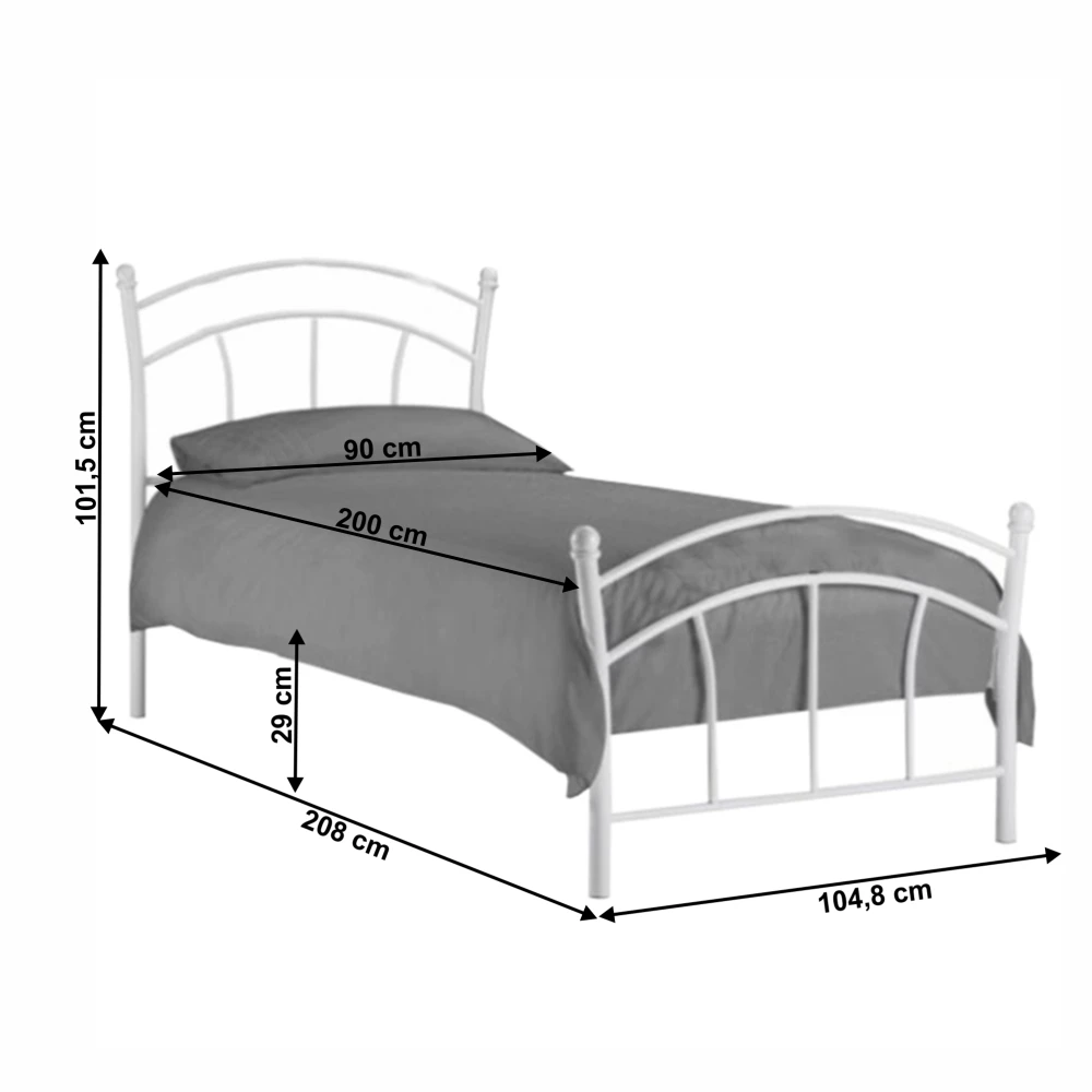 Konstrukce z kvalitního kovu zaručuje pevnost, stabilitu a dlouhou životnost. Součástí postele je lamelový rošt, který poskytuje optimální oporu pro matraci a zajišťuje pohodlný spánek. Díky výšce po rošt 29 cm je postel vzdušná a zároveň praktická pro každodenní používání.