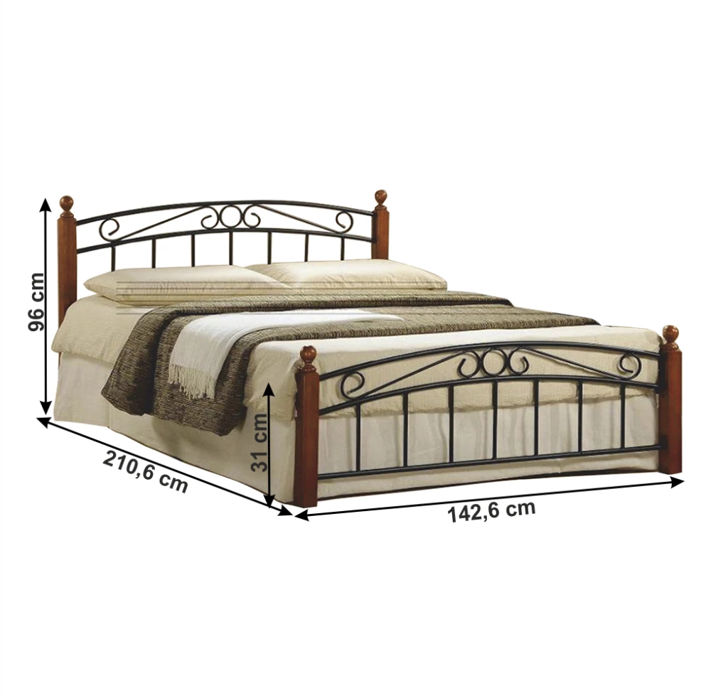 Dodejte své ložnici styl a špetku romantiky s kovovou postelí DOLORES v elegantní kombinaci černého kovu a dřevěných prvků v odstínu třešeň. Tento nadčasový design působí vzdušně, přirozeně a dodá každému interiéru osobitý charakter.