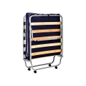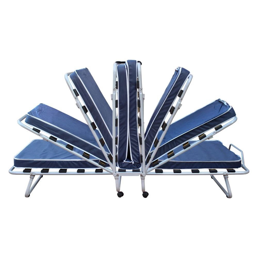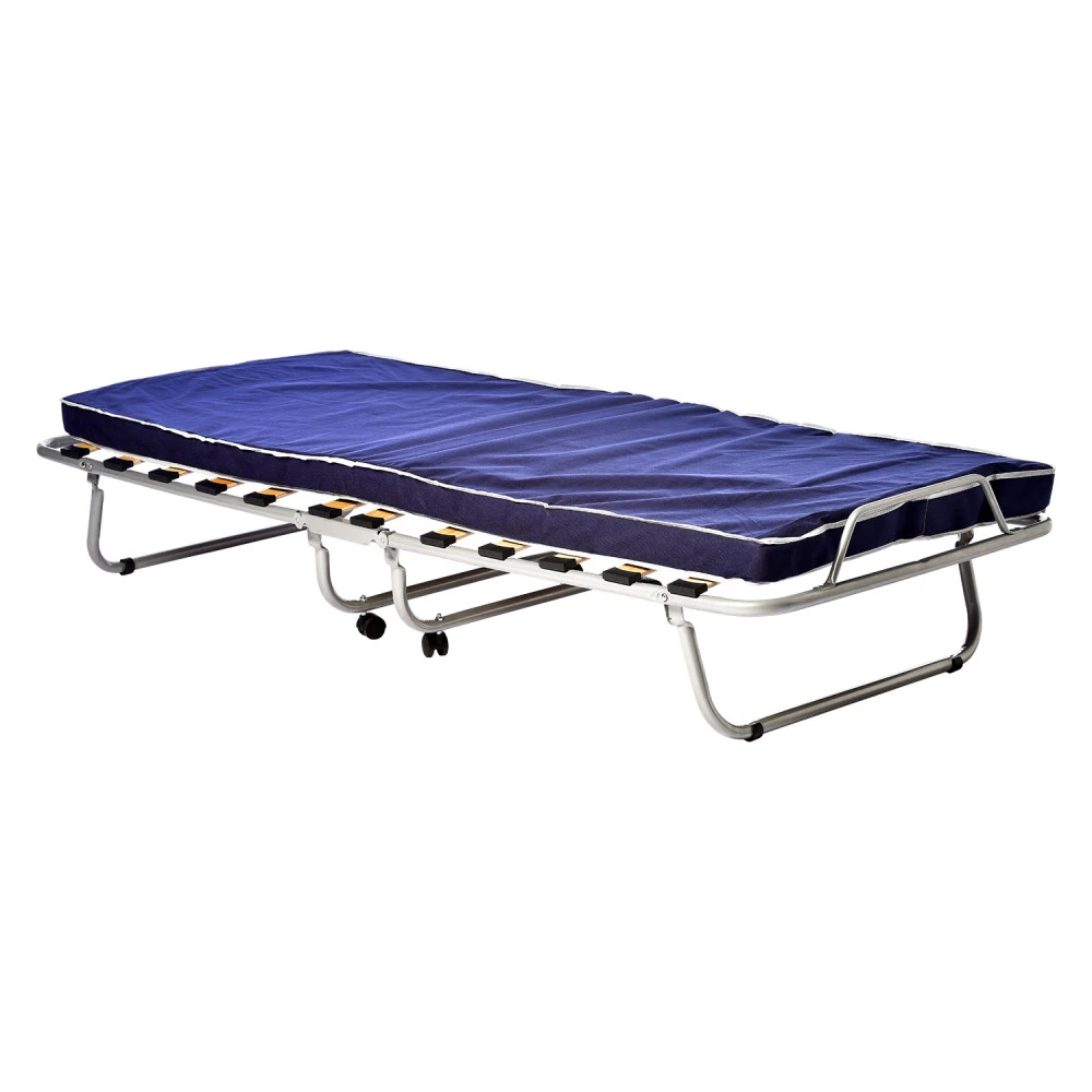 trubkový rám, barevné provedení stříbrná, 12 dřevěných lišt rozměr složené (š/h/v) 81 × 29 × 88 cm cena včetně matrace, výška matrace 6 cm