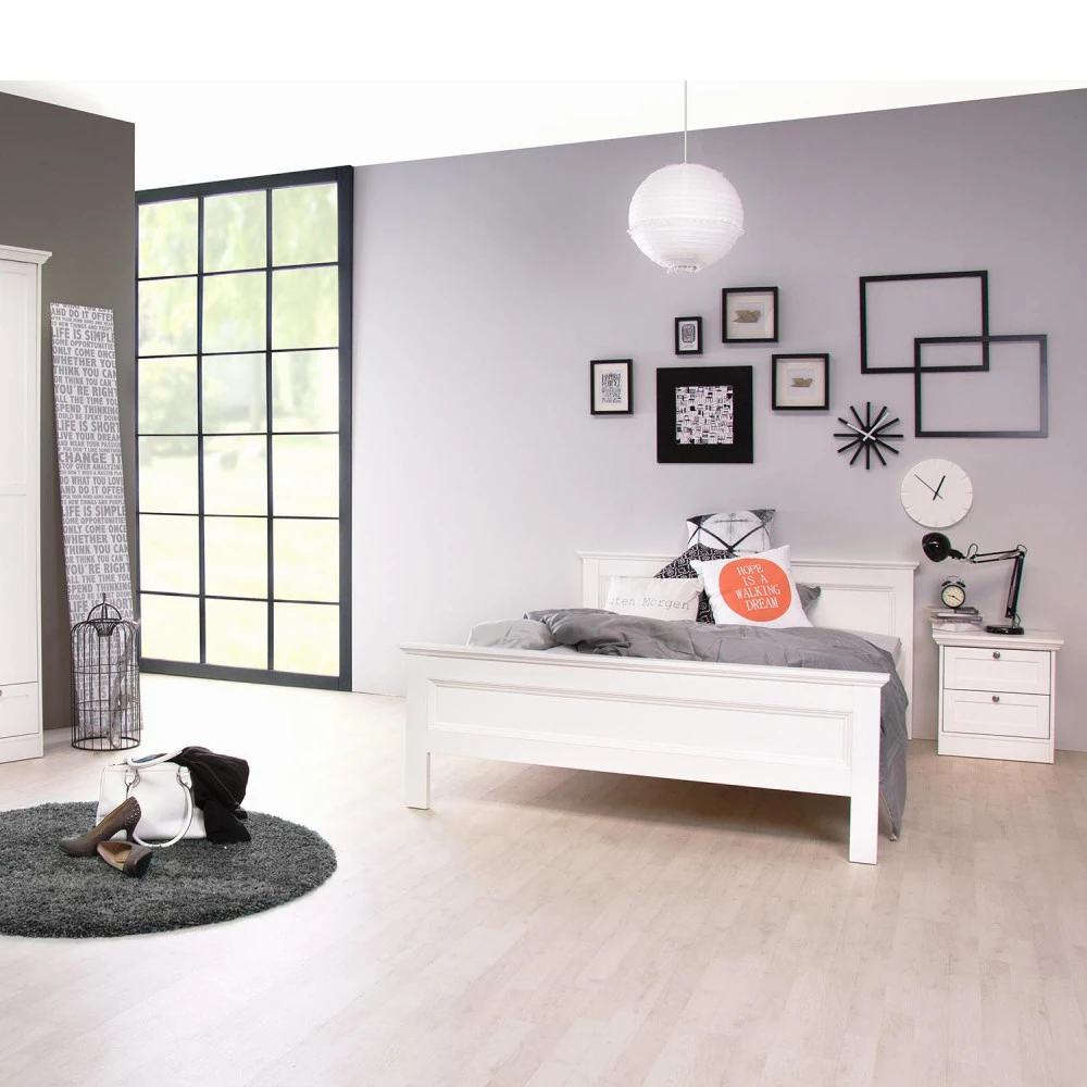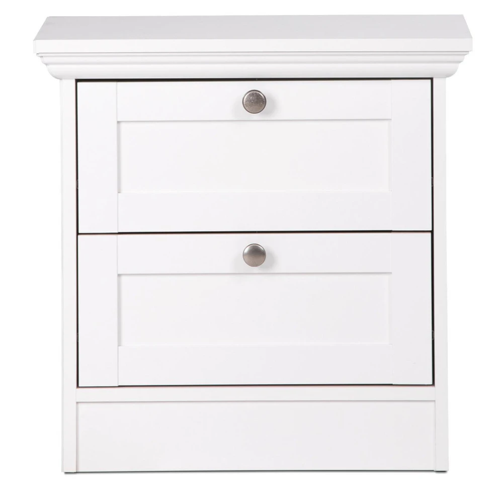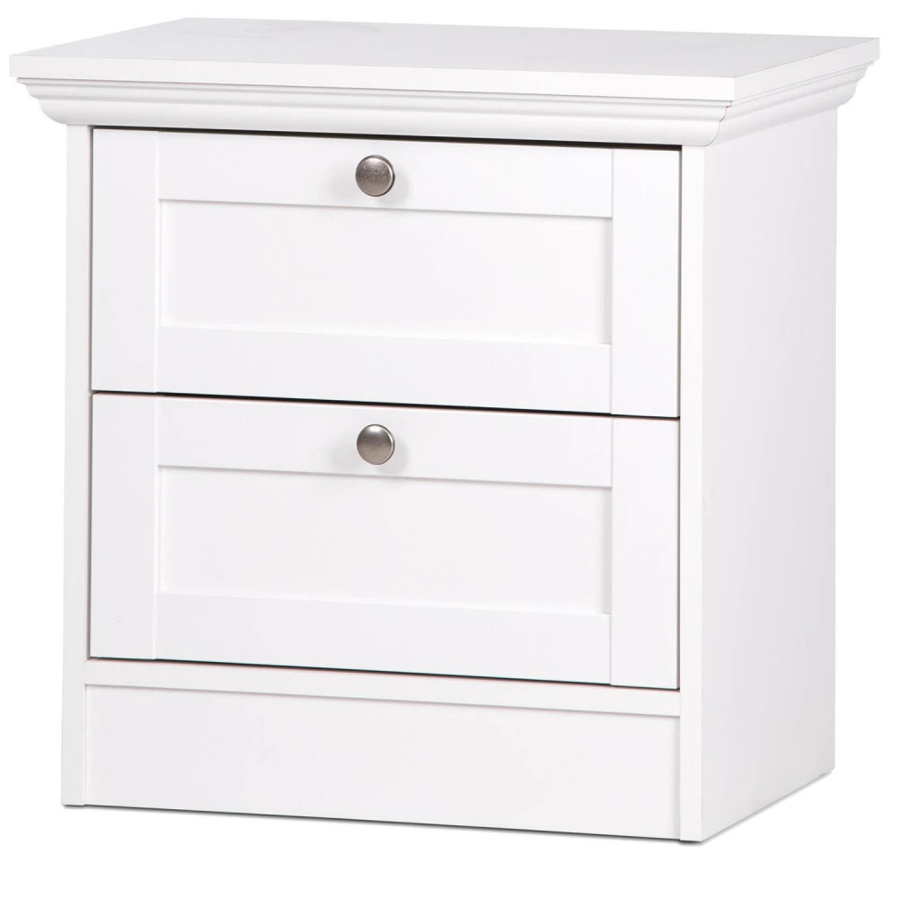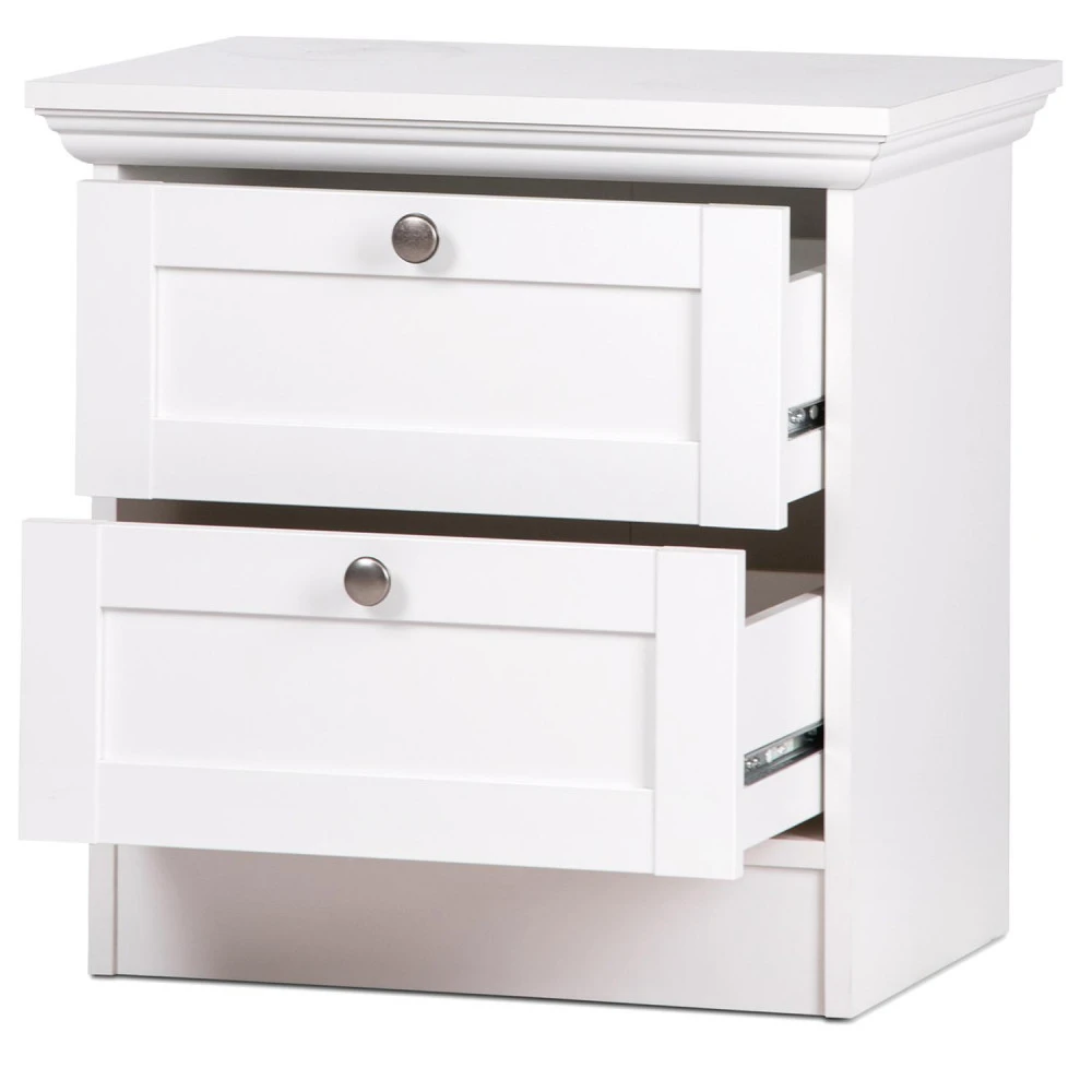 materiál kombinace MDF / lamino, barevné provedení bílá 2 zásuvky s kovovými pojezdy, úchytky starožitného vzhledu součást sestavy Landwood
