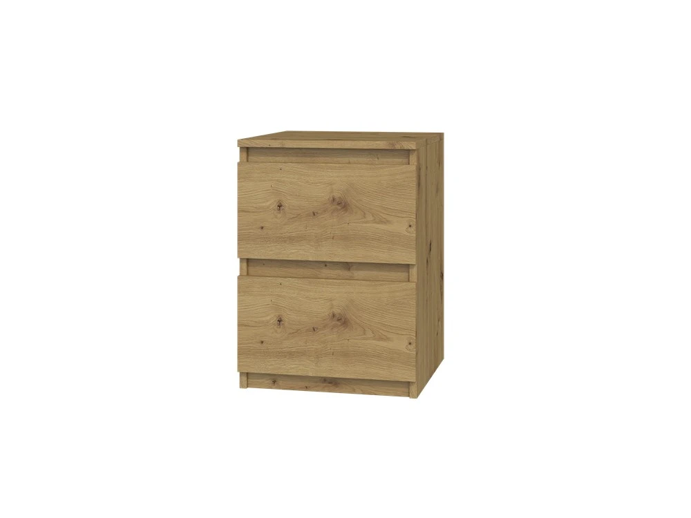 Nepostradatelným prvkem každé ložnice jsou noční stolky. Nadčasový stolek Malvína M2 v minimalistickém designu splní očekávání všech, kteří oceňují kombinaci jednoduchosti a elegance. Bezúchytková čela zásuvek zajistí pohodlné používání a dokreslí moderní a útulný charakter vašeho interiéru. Je vyroben ze snadno udržovatelného lamina, hrany jsou zakončené vysoce odolným ABS materiálem.