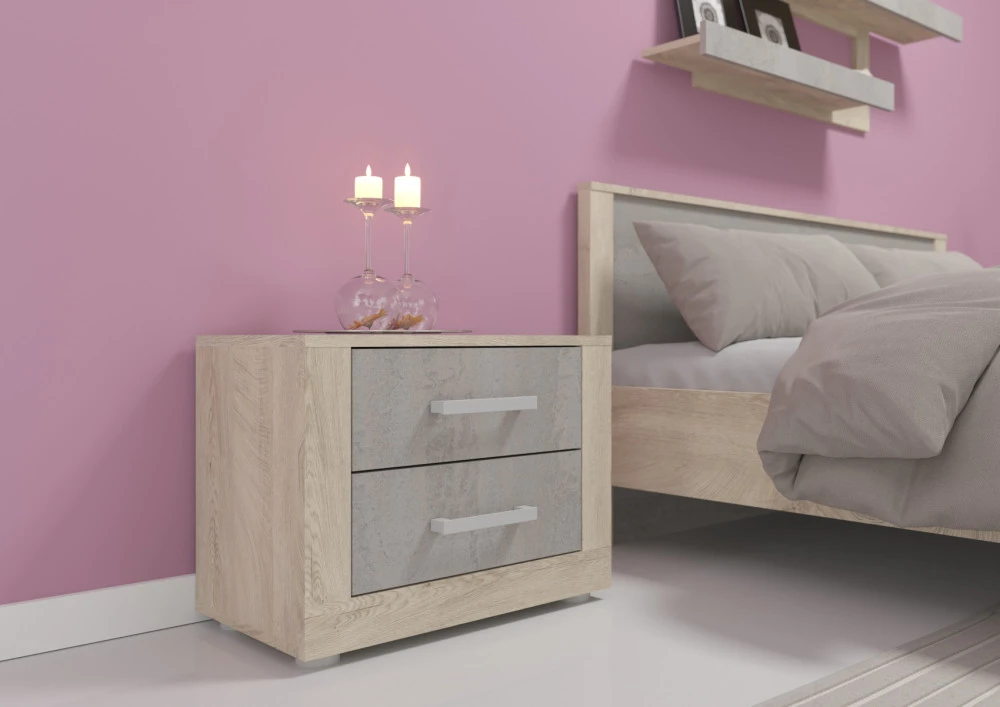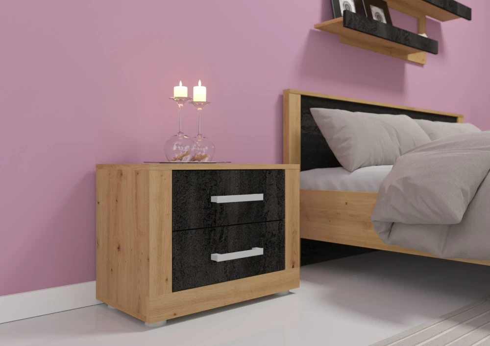 Originální noční stolek z kolekce Viky je vyroben z lamino materiálů 16 a 25 mm. Je vhodný do každého interiéru, kde požaduje zákazník moderní design. Výběr z několika barevných variant. Dodáváno v demontu.