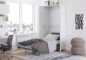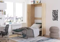 TEDDY 90 je praktická sklápěcí jednolůžková postel které je vhodná do menších pokojů. Postel jednoduše sklopíte, po složení se změní na vyšší skříň, která zabírá díky hloubce 42 cm minimum prostoru. Teddy se vyrábí z kvalitního lamina o síle 16 mm s ABS úpravou hran, takže je odolnější vůči mechanickému poškození či odštípnutí.
