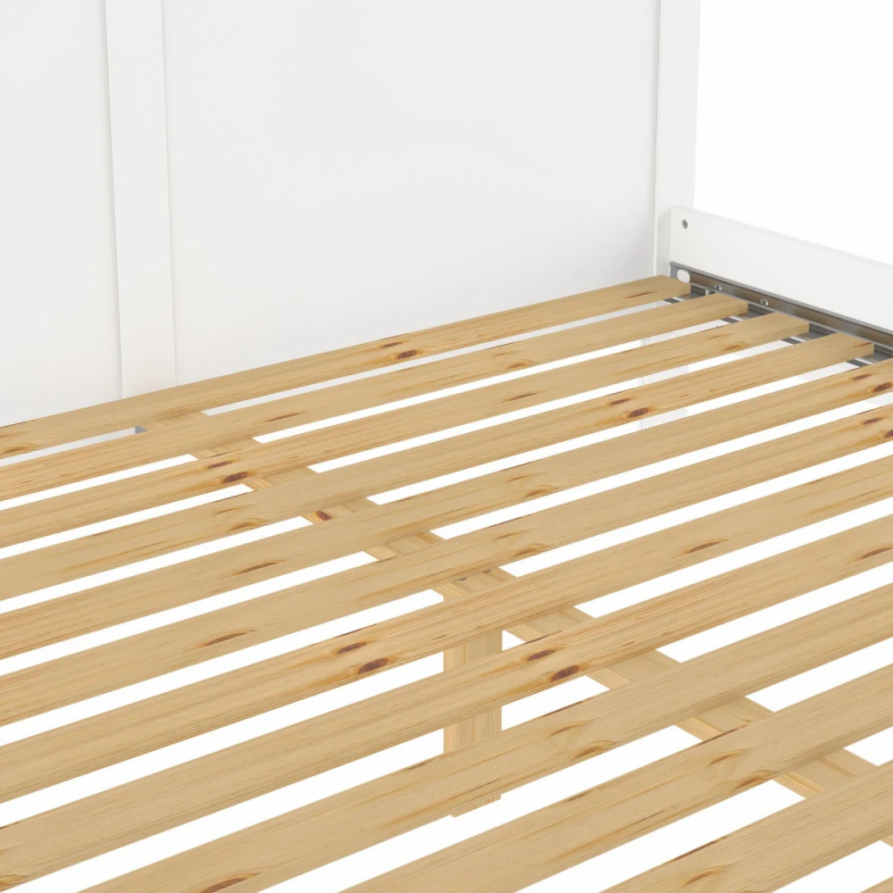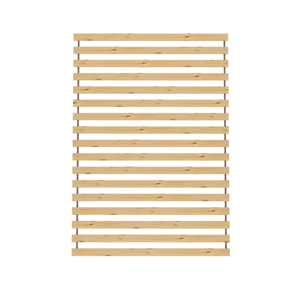 Pevný rošt z masivních dřevených latěk o tlouštce 1,5 cm je vhodný pro rámové postele. Zajišťuje stabilní oporu matrace a umožňuje cirkulaci vzduchu.