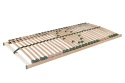 Tento komfortní lamelový rošt je navržen tak, aby poskytoval maximální podporu páteři, skvělou přizpůsobivost tělu a dlouhou životnost. Díky pružným lamelám uloženým ve výkyvných pouzdrech nad bočnicí nabízí rošt výrazně vyšší komfort při spánku i lepší reakci na pohyb během noci. 7 anatomických zón umožňuje rozložení tlaku podle jednotlivých partií těla, což podporuje zdravé ležení ve všech polohách. Měkčená ramenní zóna zajišťuje správnou podporu páteře zejména při spánku na boku. Rošt je vybaven středovým stabilizačním popruhem, který zvyšuje nosnost i životnost celé konstrukce. Pomocí posuvných objímek v bederní části si můžete nastavit individuální tuhost podle svých potřeb. Fóliované lamely nejen chrání konstrukci před vlhkostí, ale také omezují usazování prachu a usnadňují údržbu – ideální řešení pro alergiky.