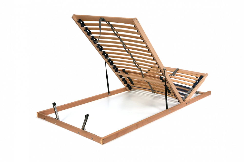 - zpevněný polohovací lamelový rošt s výklopným systémem pro přístup do úložného prostoru od nohou pomocí vzduchových pístů