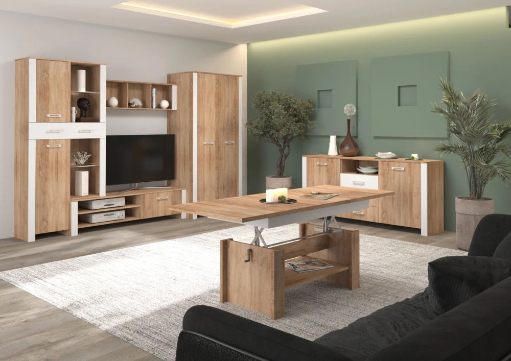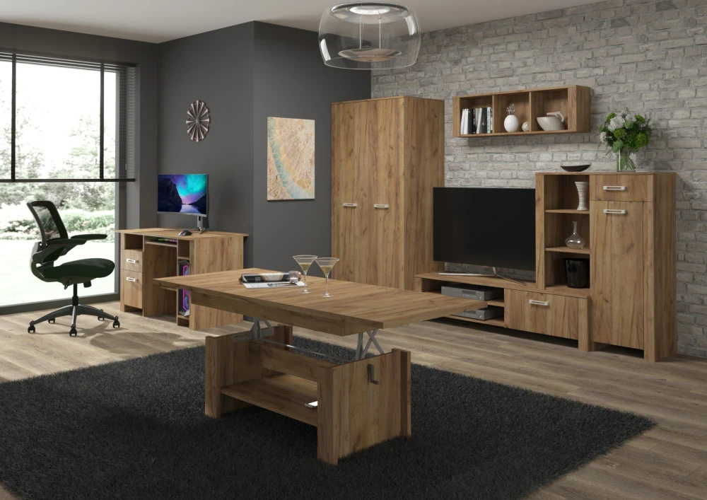 Kolekce Hugo se vyznačuje moderním vzhledem v trendy odstínech. Originální tvary a prvky lemování podtrhují design. Materiál je kvalitní 16 mm silné lamino. Příjemný design nábytku doplňují stříbrné úchytky z odolného tvrzeného plastu. Dodáváme v demontu.