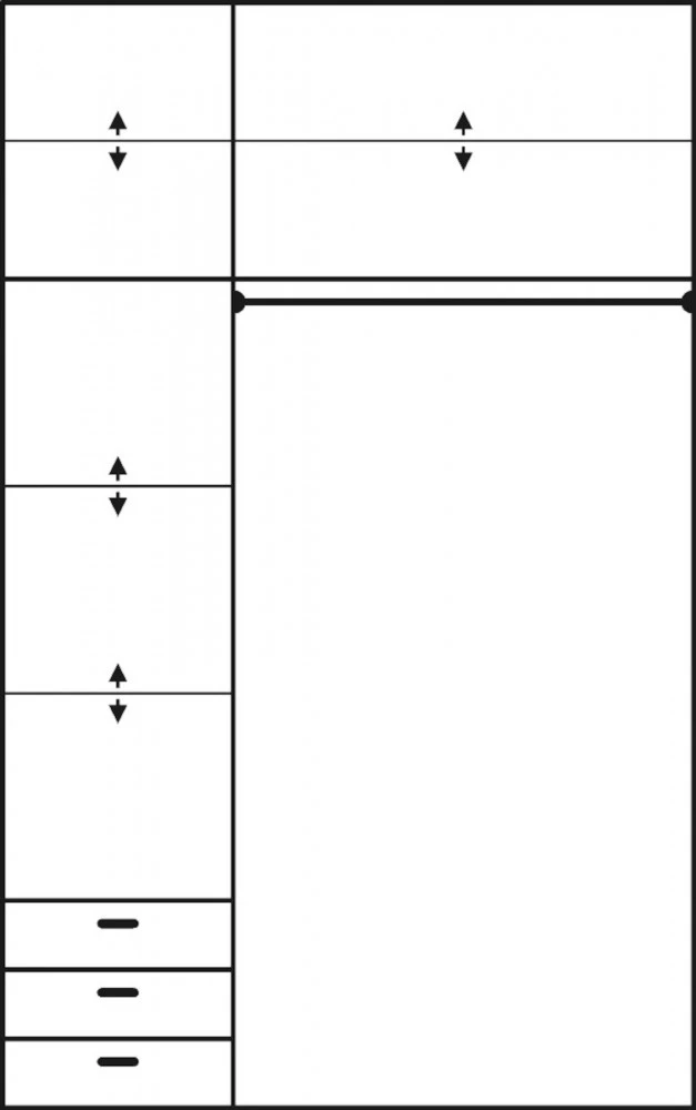 Velká šatní skříň Kamma bez zrcadla má moderní design a je oblíbená především díky velkému úložnému prostoru a praktické nástavbě. Má výškově nastavitelné police. Předsíňová skříň je vyrobena z 16 mm lamina, na výběr z několika barevných variant. Dodáváno v demontu. Vnitřní vybavení skříně viz obrázek.