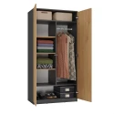 Šatní skříň Malvína v trendy barvách a moderním designu je praktický kus nábytku, který najde své uplatnění v ložnici, dětském pokoji, ale také v kanceláři nebo domácí pracovně. Nabízí dostatek úložného prostoru s možností instalace polic nebo šatní tyče v závislosti na vašich požadavcích. Dvířka se systémem TIP-ON se otevírají po jemném zatlačení čela dvířek. Nábytek je vyroben z nejkvalitnější laminované desky odolné proti poškrábání a vlhkosti, hrany jsou zakončené ABS materiálem.