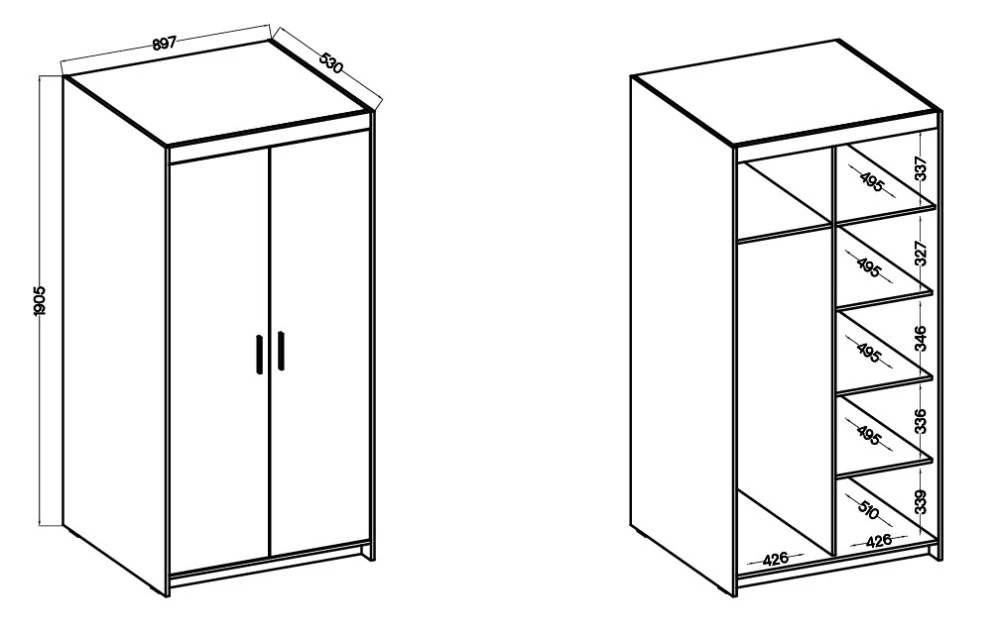 Šatní skříň Enja je vyrobena z kvalitního lamina tl.16 mm, které je odolné a snadné na údržbu. Vnitřní uspořádání skříně je praktické a poskytuje dostatek úložného prostoru. Své uplatnění najde v ložnici, předsíni i v dětském pokoji. Ke skříni lze dokoupit nádstavec. Skříň je dodávaná v demontu a nabízíme ji ve několika barevných provedeních. Součástí balení je montážní plánek včetně všech potřebných spojovacích materiálů.