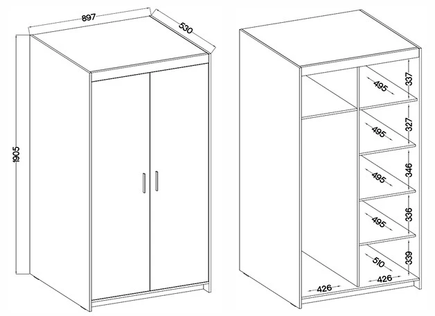 Šatní skříň Enja je vyrobena z kvalitního lamina, které je odolné a snadné na údržbu. Vnitřní uspořádání skříně je praktické a poskytuje dostatek úložného prostoru. Své uplatnění najde v ložnici, předsíni i v dětském pokoji. Ke skříni lze dokoupit nástavec. Skříň je dodávaná v demontu a nabízíme ji ve několika barevných provedeních. Součástí balení je montážní plánek včetně všech potřebných spojovacích materiálů.