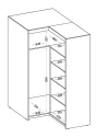Rohová šatní skříň Enja je vyrobena z kvalitního lamina tl.15 mm, které je odolné a snadné na údržbu. Vnitřní uspořádání skříně je praktické a poskytuje dostatek úložného prostoru. Své uplatnění najde v ložnici, předsíni i v dětském pokoji. Ke skříni lze dokoupit nádstavec. Skříň je dodávaná v demontu a nabízíme ji ve několika barevných provedeních. Součástí balení je montážní plánek včetně všech potřebných spojovacích materiálů.
