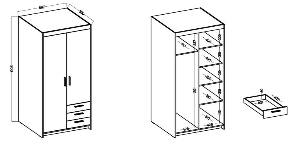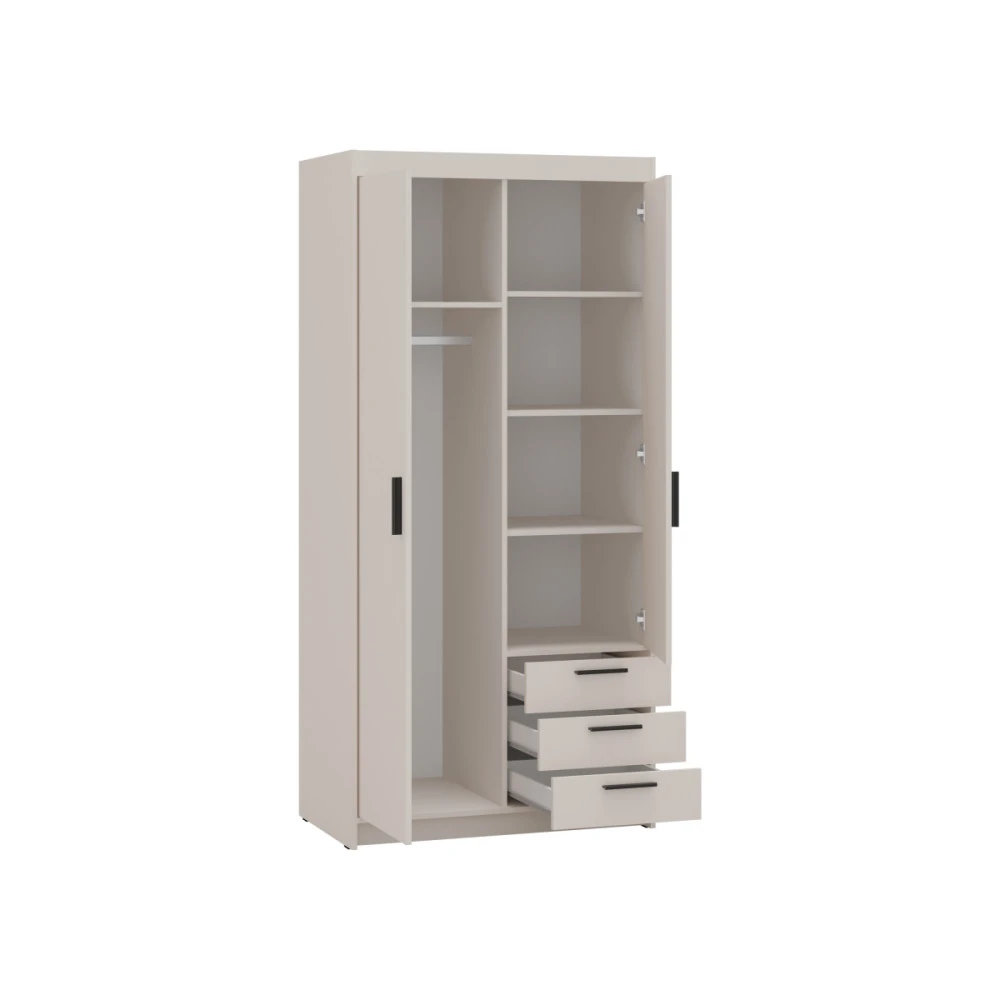 Šatní skříň Enja je vyrobena z kvalitního lamina tl.15 mm, které je odolné a snadné na údržbu. Vnitřní uspořádání skříně je praktické a poskytuje dostatek úložného prostoru. Své uplatnění najde v ložnici, předsíni i v dětském pokoji. Ke skříni lze dokoupit nádstavec. Skříň je dodávaná v demontu a nabízíme ji ve několika barevných provedeních. Součástí balení je montážní plánek včetně všech potřebných spojovacích materiálů.