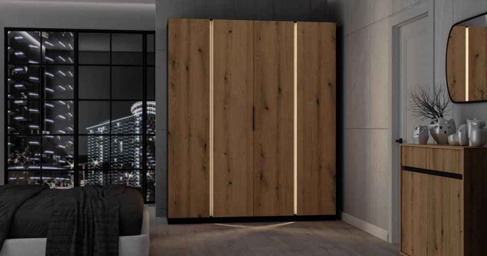 Pro ještě lepší přehlednost lze skříň doplnit o LED osvětlení, které usnadní orientaci uvnitř a dodá celku moderní nádech.