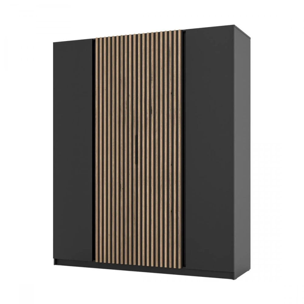 Skříň je rozdělena do tří částí a kombinuje závěsnou tyč pro oblečení na ramínkách a 11 polic pro složené prádlo, doplňky nebo sezónní věci. Toto řešení umožňuje efektivní organizaci a maximální přehlednost.