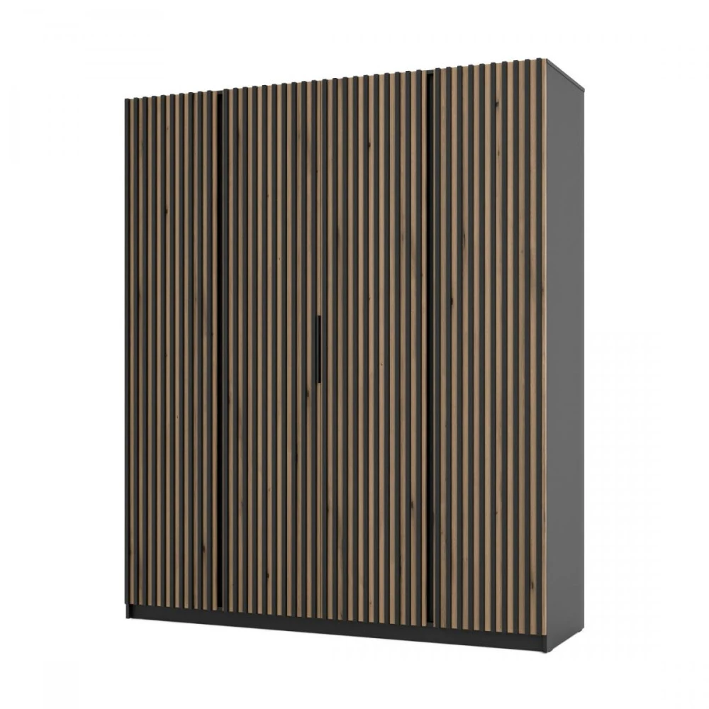 Šatní skříň Keny XV o šířce 200 cm představuje ideální kombinaci moderního vzhledu, kvalitního zpracování a praktického využití. Díky čistým liniím a promyšlenému vnitřnímu členění nabízí dostatek prostoru pro přehledné uložení oblečení i doplňků a skvěle se hodí do ložnice, šatny i předsíně.