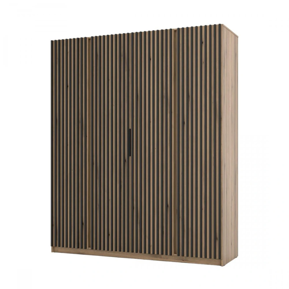 Skříň je rozdělena do tří částí a nabízí kombinaci závěsné tyče a 11 polic. Toto řešení umožňuje efektivní organizaci – oblečení na ramínkách, složené prádlo i doplňky budete mít vždy přehledně uložené.