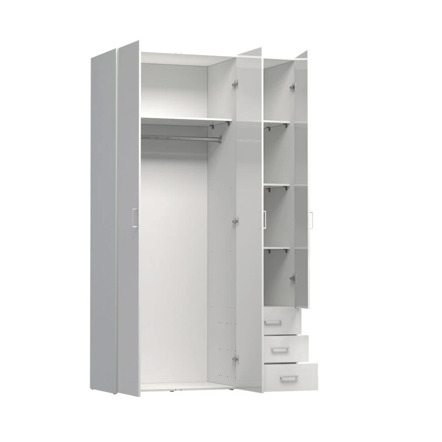 Šatní skříně Sid v nadčasovém designu bez námahy doplní jakýkoliv interiér. Vnitřní uspořádání nabízí dostatek úložného prostoru, funkčnost a univerzální využití. Série Sid vyrobená ze snadno udržovatelného lamina obsahuje také noční stolky a komody v různých velikostech.
