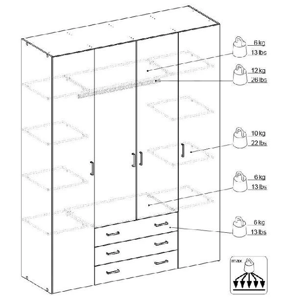 Zboží je dodáváno v demontu. Součástí je schematický návod na montáž včetně všech potřebných spojovacích prvků. Vyobrazené doplňky a dekorace nejsou v ceně.