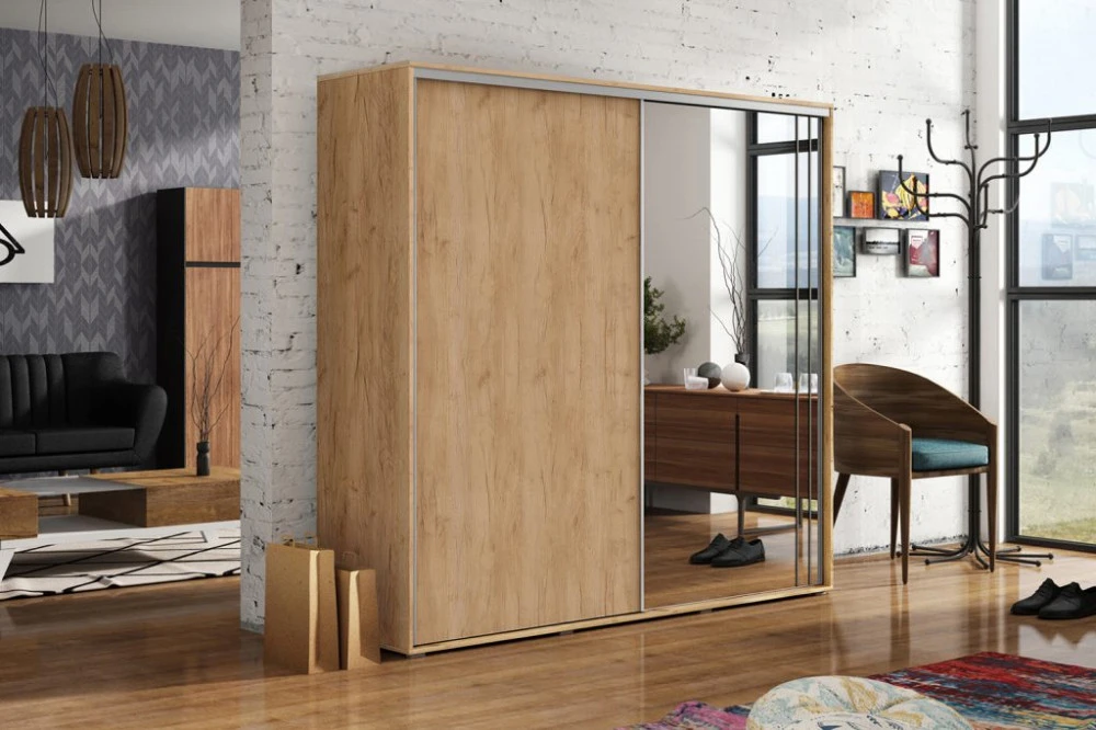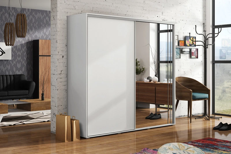 Šatní skříň A20 byla vyrobena v minimalistickém duchu, ale to jí neubírá na praktičnosti. Skříň nabízí spoustu úložného prostoru skrytého za posuvnými dveřmi.