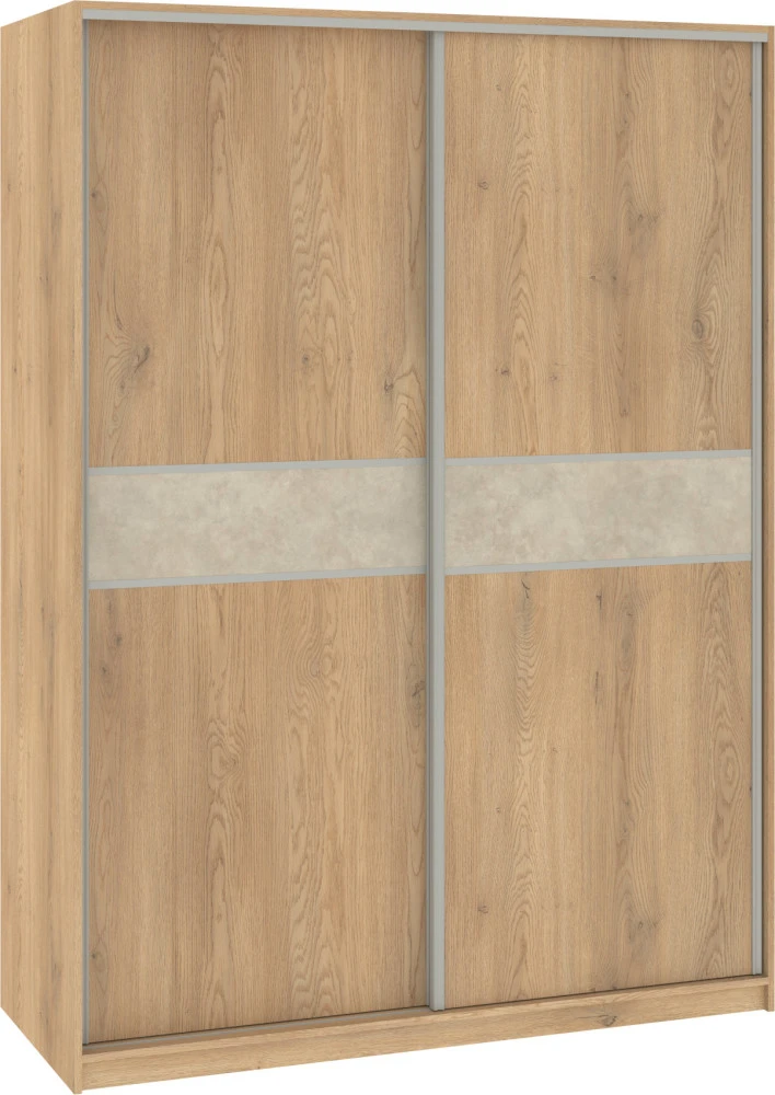 Moderní šatní skříň Puerto s posuvnými dveřmi, které vám ušetří hodně prostoru ve vaší domácnosti. Lamino materiál, použitý na výrobu skříně, je 16 mm silný. Skříň Puerto si můžete vybrat z více moderních dekorů.