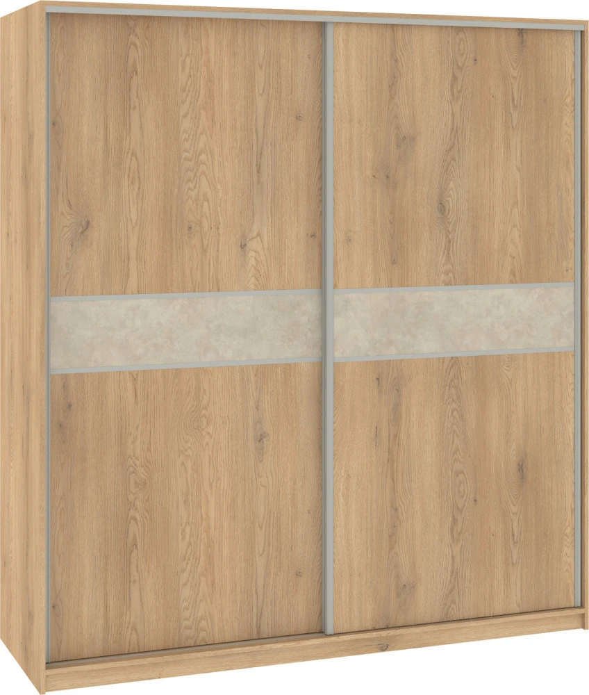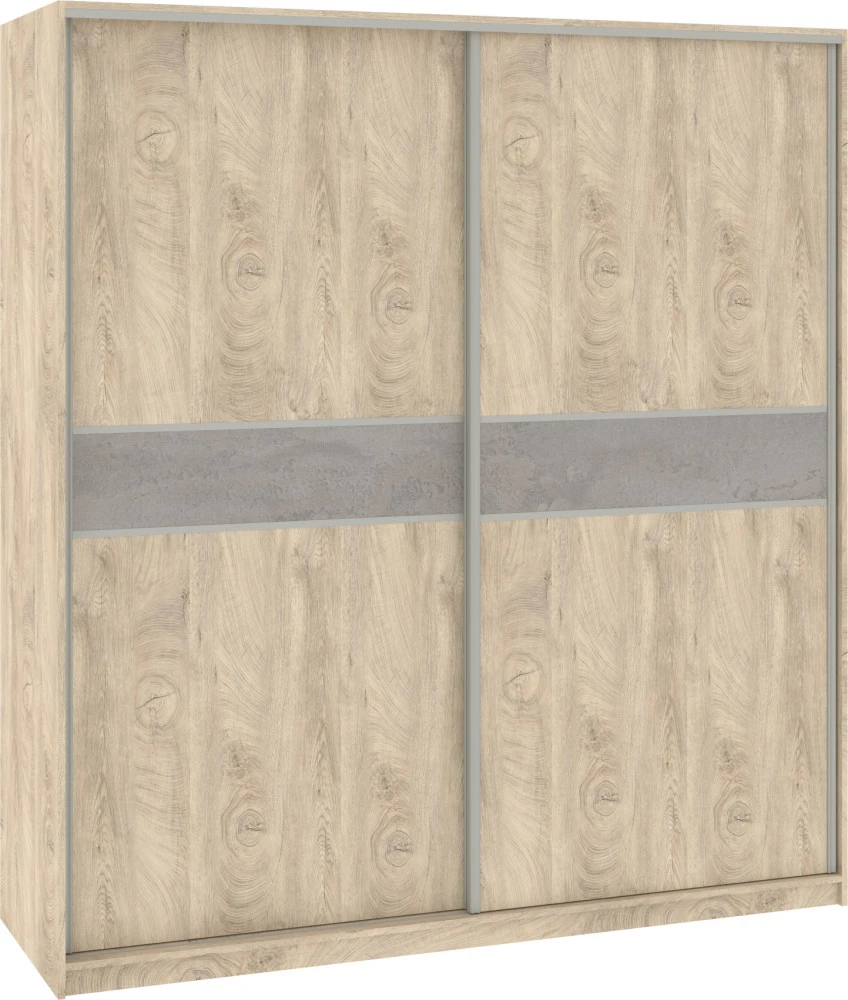 Moderní šatní skříň Puerto 200 s posuvnými dveřmi, které vám ušetří hodně prostoru ve vaší domácnosti. Lamino materiál, použitý na výrobu skříně, je 16 mm silný. Skříň Puerto si můžete vybrat z více moderních dekorů.