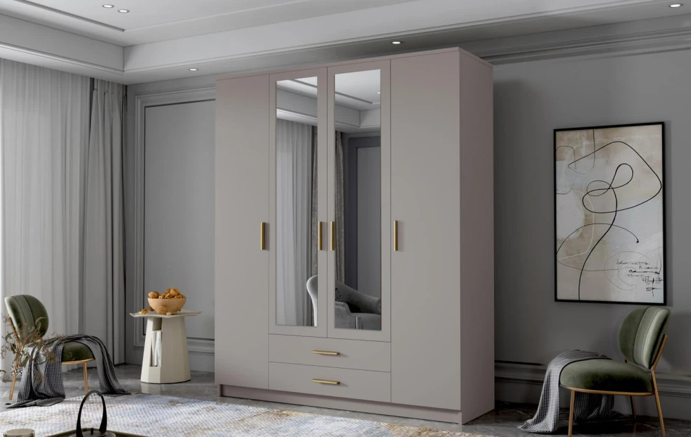 Skříň Arya II 160 - kašmír/zlaté úchytky