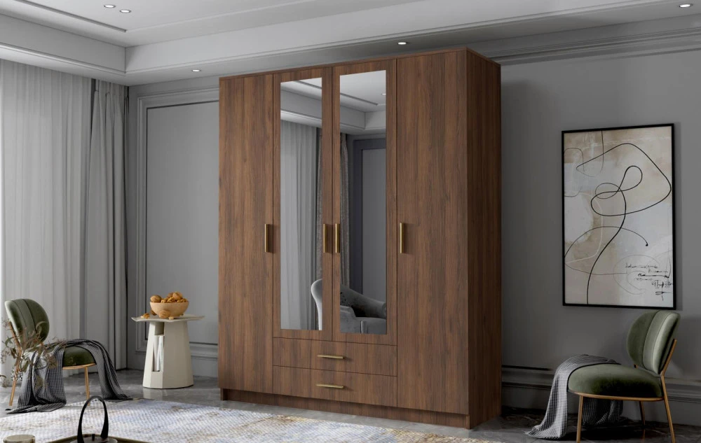 Skříň Arya II 160 - ořech/zlaté úchytky