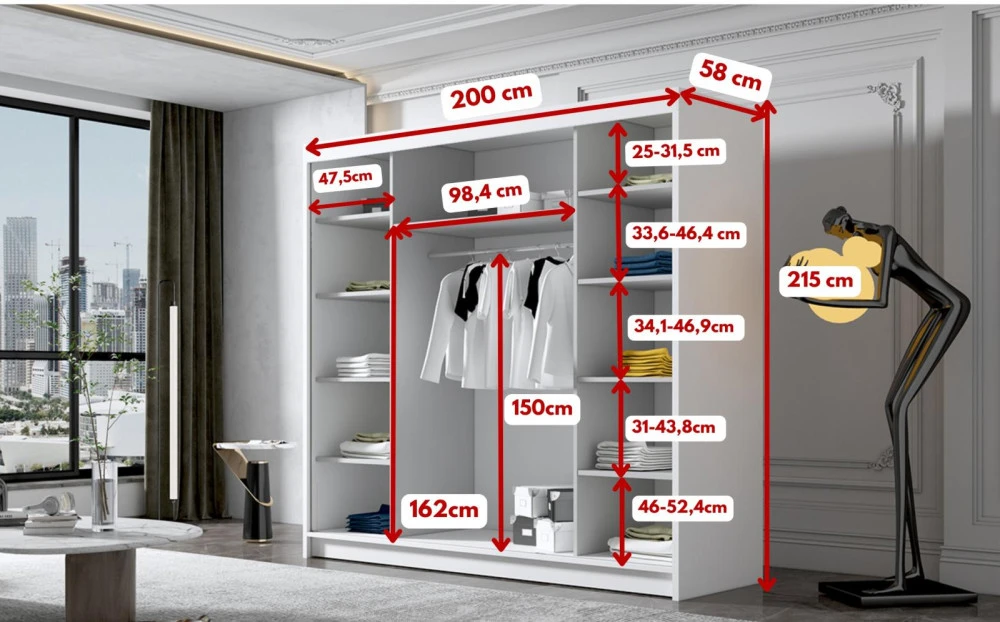 Šatní skříň Debora II s posuvnými dveřmi – šířka 200 cm
