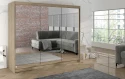 Šatní skříň Debora III v moderním designu má šířku 200 cm a je rozdělena na tři praktické části. Posuvné dveře šetří místo a usnadňují přístup do interiéru. Vnitřní uspořádání kombinuje závěsnou tyč a devět polic, což umožňuje přehledné a praktické rozdělení šatníku.