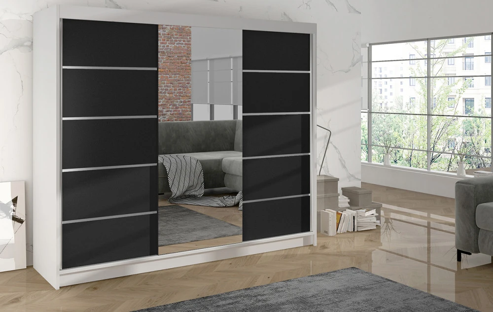 Korpus i dveře jsou vyrobeny z odolné 16 mm laminované desky s ABS hranami, které zajišťují dlouhou životnost. Posuvné dveře se hladce pohybují po hliníkových vodicích lištách. Skříň je dostupná v několika atraktivních barevných provedeních, takže ji snadno sladíte s ostatním nábytkem.