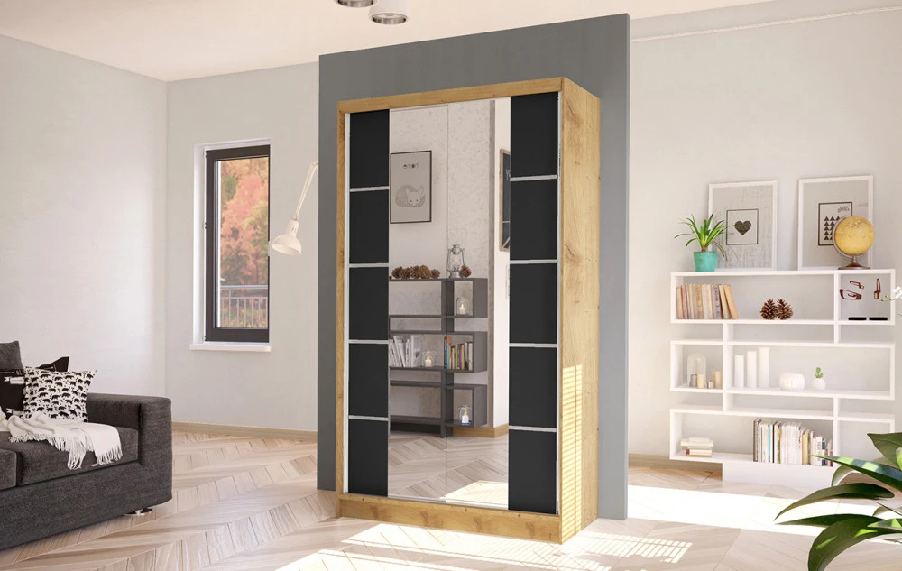 Velkou výhodou této skříně jsou posuvné dveře, které šetří místo při otevírání a zároveň umožňují pohodlný přístup do celého interiéru. Tento systém oceníte zejména v menších místnostech, kde je potřeba maximálně využít dostupný prostor.