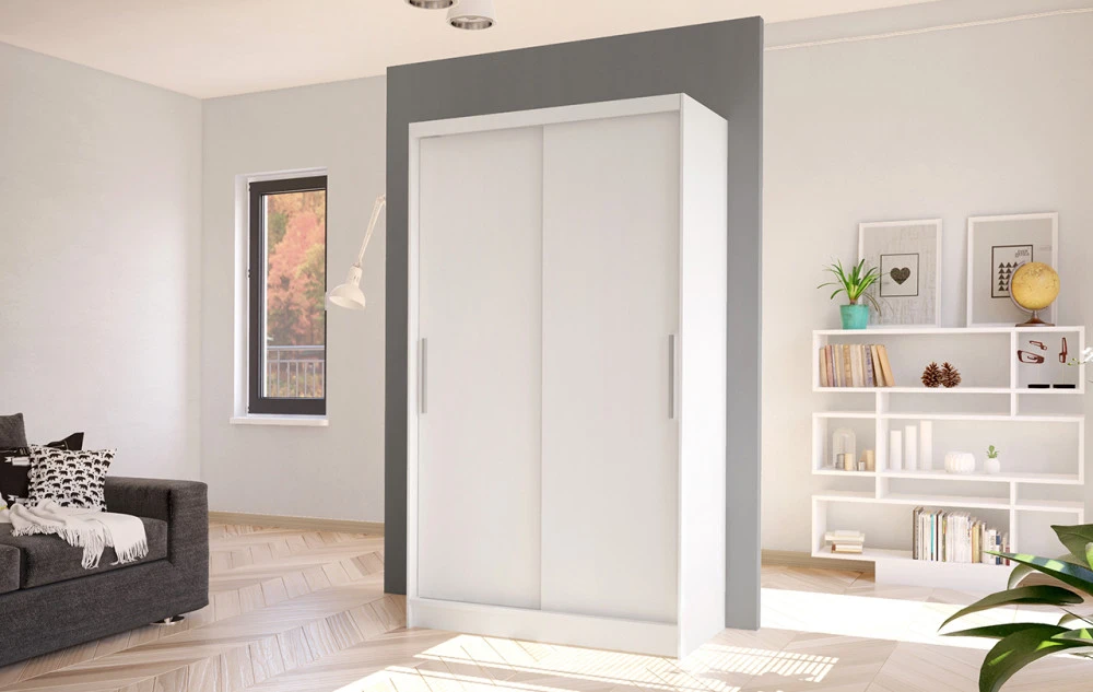 Korpus i dveře jsou vyrobeny z odolné 16 mm laminované desky s ABS hranami, které zajišťují dlouhou životnost. Posuvné dveře se hladce pohybují po hliníkových vodicích lištách. Skříň je dostupná v několika atraktivních barevných provedeních, takže ji snadno sladíte s ostatním nábytkem.