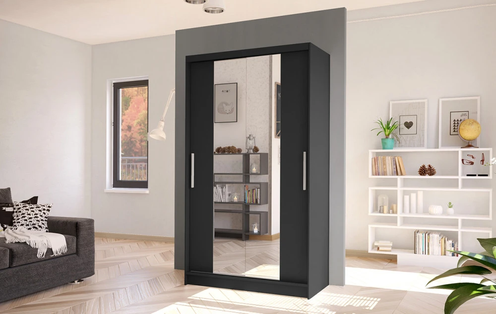 Korpus i dveře jsou vyrobeny z odolné 16 mm laminované desky s ABS hranami, které zajišťují dlouhou životnost. Posuvné dveře se hladce pohybují po hliníkových vodicích lištách. Skříň je dostupná v několika atraktivních barevných provedeních, takže ji snadno sladíte s ostatním nábytkem.