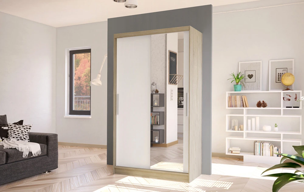 Korpus i dveře jsou vyrobeny z odolné 16 mm laminované desky s ABS hranami, které zajišťují dlouhou životnost. Posuvné dveře se hladce pohybují po hliníkových vodicích lištách. Skříň je dostupná v několika atraktivních barevných provedeních, takže ji snadno sladíte s ostatním nábytkem.