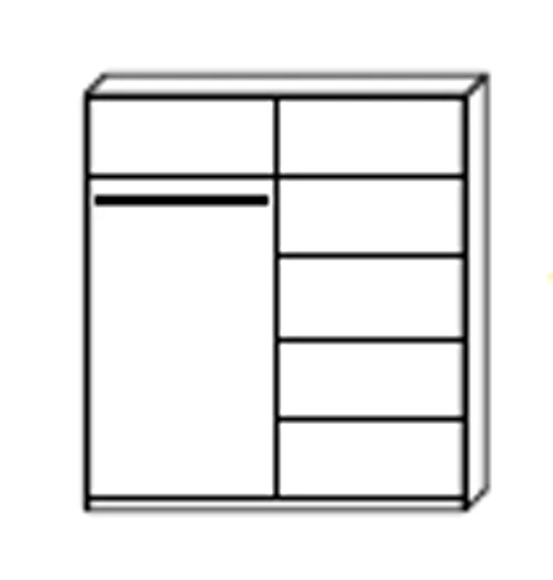 Skříň je vyrobena z kvalitního lamina a díky svému vnitřnímu uspořádání nabízí dostatek úložného prostoru. Díky svým rozměrům je vhodná i do menších pokojů nebo chodeb. Posuvné dveře šetří prostor a zrcadla na dveřích ho opticky zvětší. Součástí je šatní tyč a police. Vnitřní uspořádání skříně je vyobrazeno na fotografii. Skříň je dodávána v demontu. Součástí je montážní plánek včetně všech potřebných spojovacích materiálů.