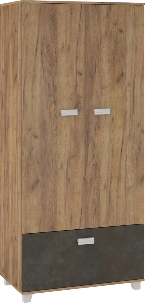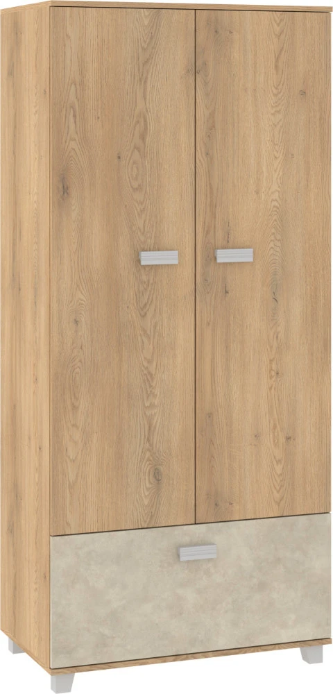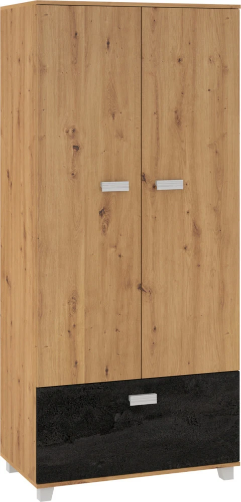 Vnitřní vybavení skříně je šatní tyč a jeden výklop ve spodní části. Je ideální kombinovat se systémovým nábytkem Solo.