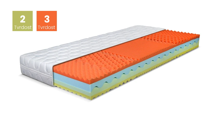5-zónová matrace, kde jádro je složeno ze dvou typů velice kvalitních studených pěn zámkovým spojem a v kombinaci s Visco pěnami dvou tuhostí. Výrazné profilování povrchu zajišťuje správný a současně velice kvalitní spánkový komfort, díky kterému je zajištěno odlehčení exponovaných míst na těle. Toto odlehčení zřetelně zlepšuje prokrvení pokožky a uvolnění svalů, tím je spánek klidnější a snižuje se potřeba měnit spánkovou polohu. Matrace je určená pro váhovou kategorii do 130kg. Potah LYOCELL.