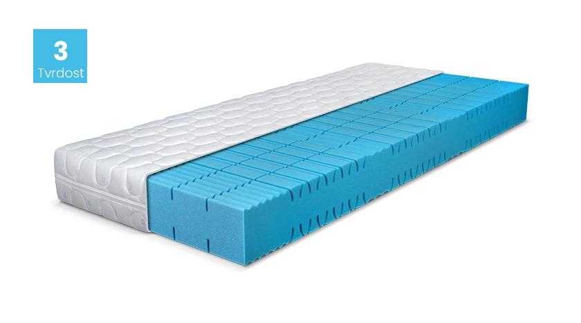 7zónová monobloková matrace ze studené vysoce elastické HR pěny. Konstrukce této matrace se speciálně strukturovaným antidekubitním povrchem v oblasti ramen, beder a pánve garantuje vynikající přizpůsobení se tělu. Důmyslným prořezem je dosaženo optimálního proudění vzduchu a tím je zabezpečeno ideální spánkové klima. Antidekubitní prořez slouží jako prevence proti vzniku dekubitů – proleženin. Matrace je opatřena pratelným, zónově prošitým potahem a je vhodná pro váhovou kategorii do 130kg. Potah LYOCELL.