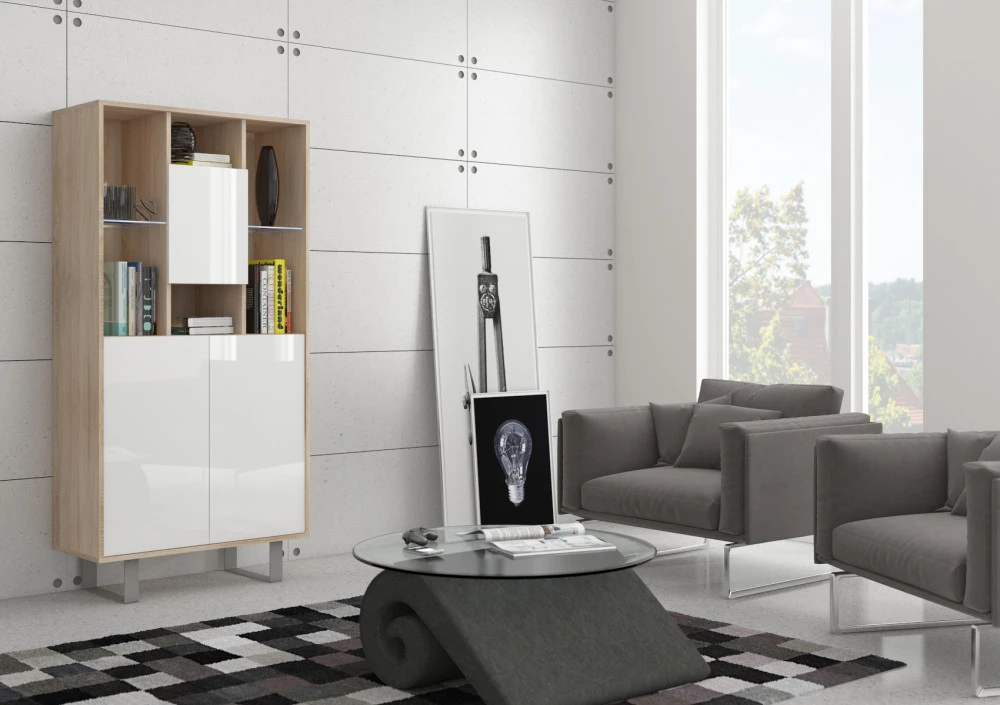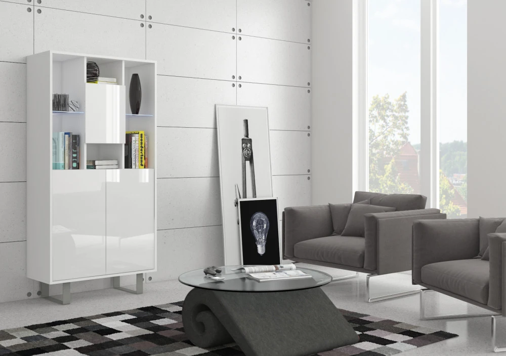 Vitrína King 5 je vyrobena z kvalitních LTD materiálů o síle 16 mm. Díky širokému výběru barevných odstínů ladí snad ke všem obývacím stěnám. Je vhodná především do interiérů, kde je kladen důraz na moderní a stylové bydlení. Nábytek je v demontu.